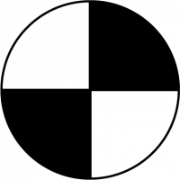 Massans centrum matchar den geometriska tyngdpunkten och beräknas enkelt. I detta exempel är masscentrum samtidigt centrum för det cirkulära området och det projicerade området för rektangeln.