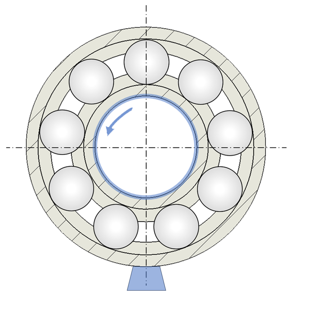 - Punktbelastning: En punktbelastning på lagret uppstår när ringen är placerad i förhållande till lastriktningen. Samma punkt är konsekvent under belastning. Även när sätet är löst migrerar inte ringen.