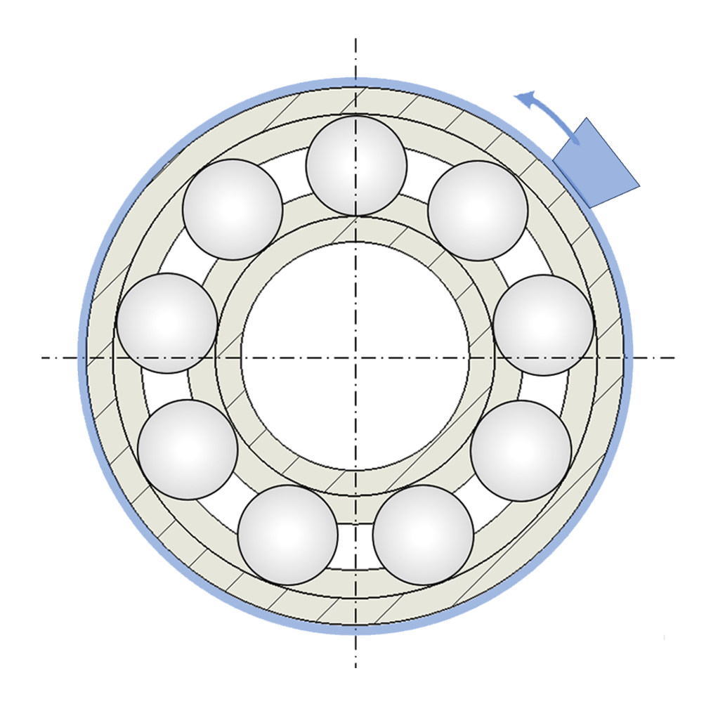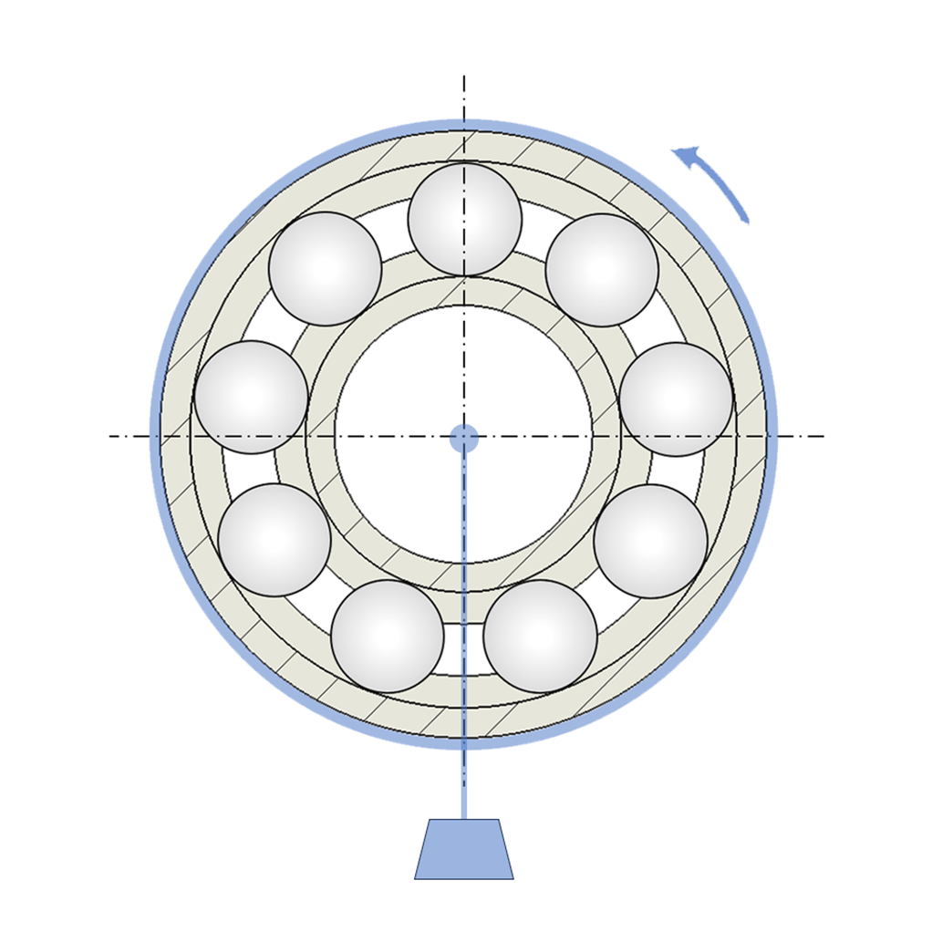 - Omkretsbelastning: En omkretsbelastning på lagret uppstår när ringen körs i förhållande till belastningsriktningen. Hela ringen stressas en gång under vridningen. Om sätet är löst kan ringen migrera, så ett tätt säte bör väljas.